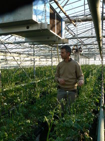Ci-dessous, Christophe Roberti de Phila-Flor montre des racines blanches bien développées de renoncules en pot chez M. Brutinel.