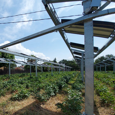 La société Ombrea a installé chez un producteur de La Crau, une structure photovoltaïque qui permet de protéger les cultures de plein champ en leur apportant les conditions favorables à leur bon développement.